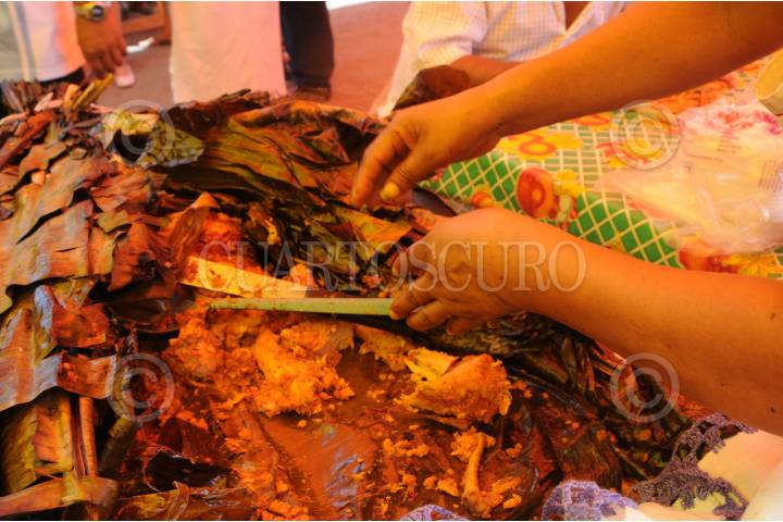 SAN FELIPE ORIZATLAN, HIDALGO, 10AGOSTO2009.- Durante el "XIV Festival de la Huasteca", se impartió un taller para la elaboración del Zacahuil, que es más que un platillo. Se trata de una joya gastronómica que durante muchos años ha dado identidad a la región de la Huasteca. Por ello, familias de las comunidades de los seis estados que conforman esta región conservan su preparación tradicional, de tal manera que siga viva como un elemento fundamental de idiosincrasia. FOTO: JORGE VARGAS/CONACULTA/CUARTOSCURO.COM