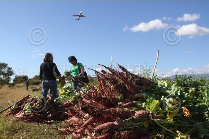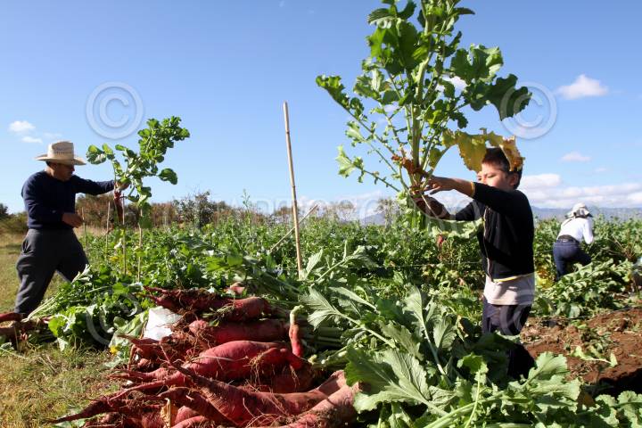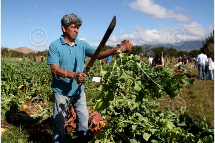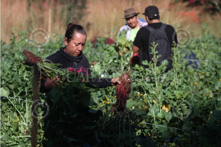 SANTA CRUZ XOXOCOTLÁN, OAXACA, 19DICIEMBRE2017.- Hortelanos de diversas edades cosechar este día al rededor de 14 toneladas de rábanos de las especies Bartender y Champion, mismos que utilizarán para participar en la tradicional Noche de Rábanos, festival con más de 100 años de tradición que se llevará a cabo el 23 de diciembre en el zócalo de la ciudad de Oaxaca y en el que los participantes crearán diversas obras con los tubérculos cosechados, para ello de acuerdo con las reglas únicamente podrán hacer uso de un cuchillos y palillos. FOTO: ARTURO PÉREZ ALFONSO/ CUARTOSCURO.COM