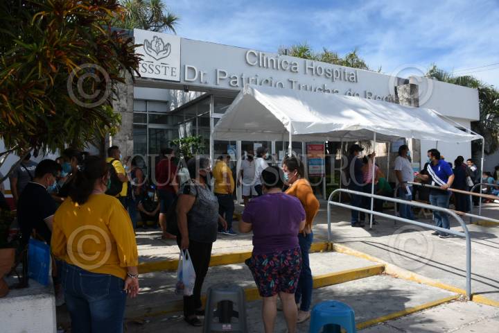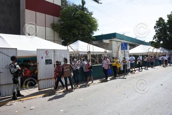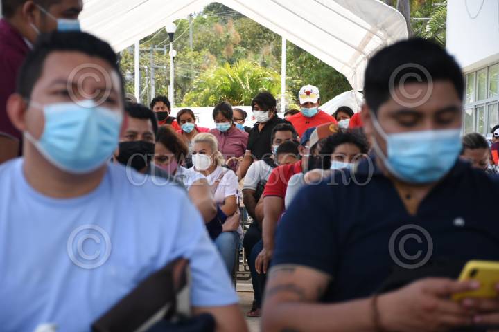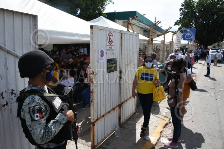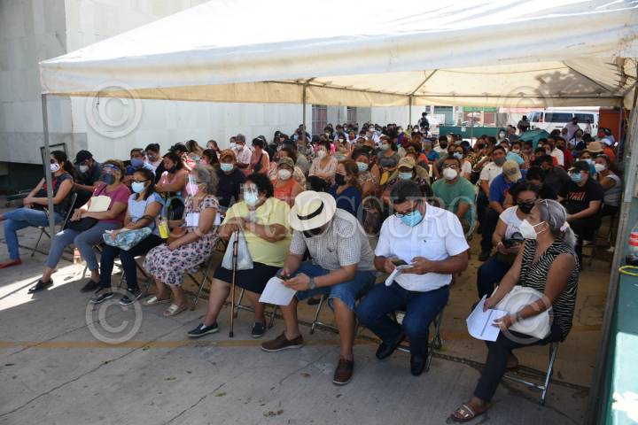 Segundo día de la jornada de vacunación contra el SARS-Cov-2 a maestros en Campeche, las aglomeraciones tanto en las filas como en el área de revisión de documentos se notaron en las clínica