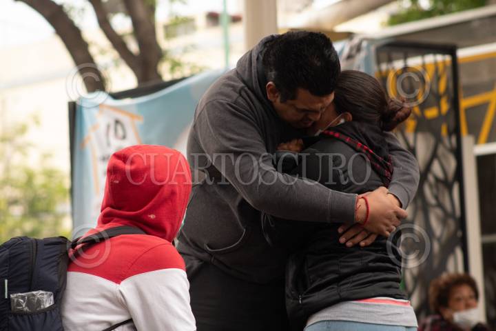 Familia de Polly Olivares, durante su estadía a las afueras del Hospital Xoco.
