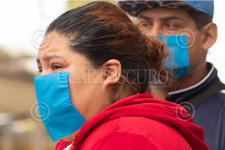 Familiares en las afueras del Hospital Balbuena esperan noticias de su paciente internado por COVID-19.