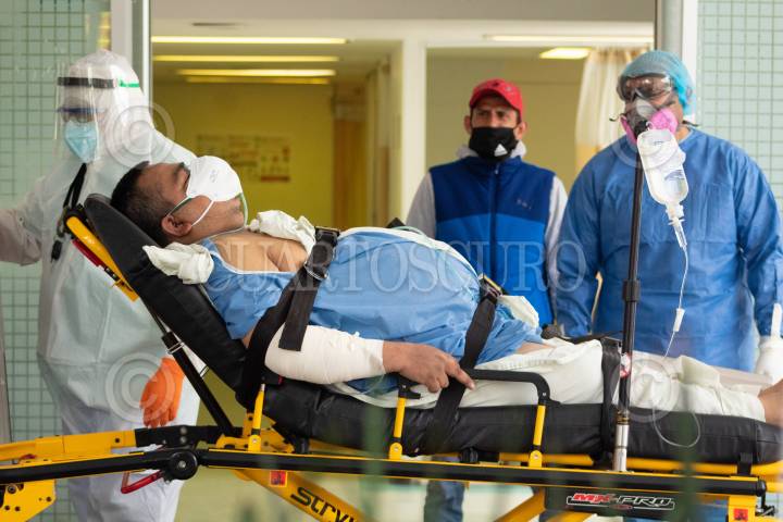 Personal de salud trasladan a un hombre diagnosticado con COVID-19, del Hospital Balbuena al Hospital Belisario Dominguez.