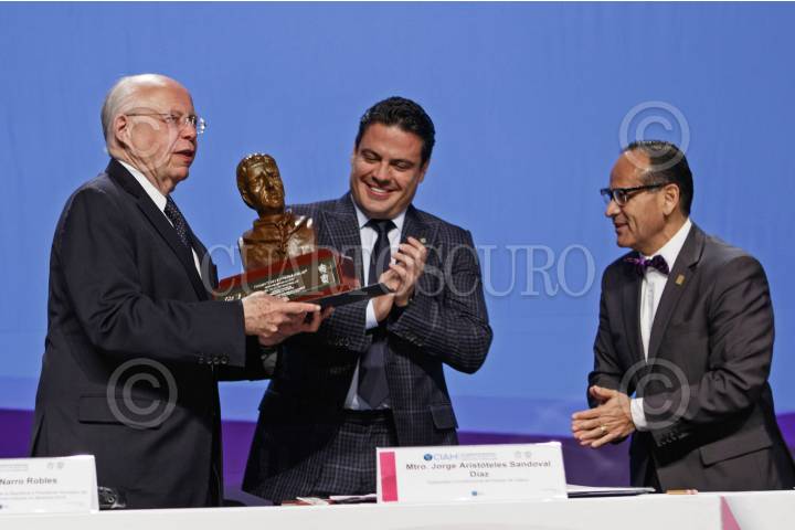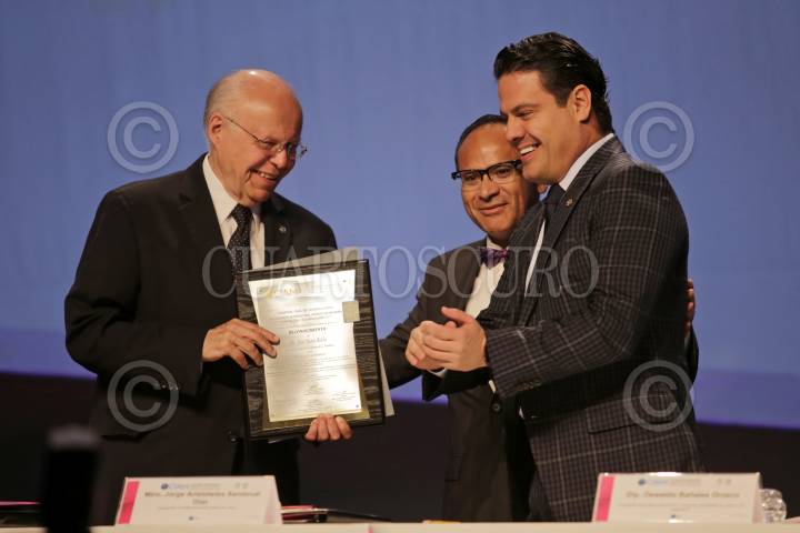 GUADALAJARA, JALISCO. 23FEBRERO2017.- José Narro Robles Secretario de Salud del Gobierno Federal, fue reconocido en el marco del XVX Congreso Internacional de Avances en Medicina (CIAM) del Hospital Civil de Guadalajara (HCG), mismo que fue inaugurado por el mandatario nacional en compañía del Gobernador del Estado Jorge Aristóteles Sandoval Díaz y el Director General de Hospitales Civiles de Guadalajara, el Dr., Héctor Raúl Pérez Gómez, en evento que se realizo en la Expo. FOTO : FERNANDO CARRANZA GARCIA / CUARTOSCURO.COM