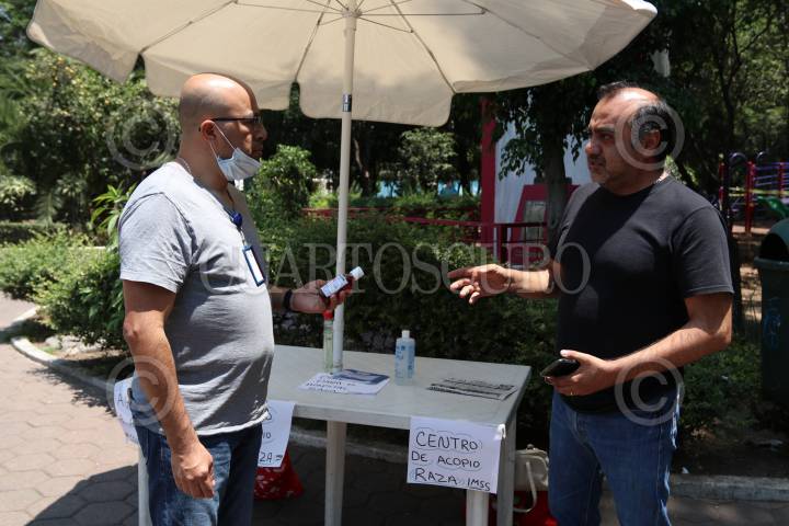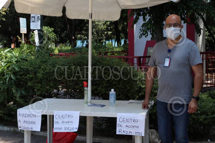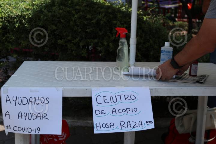 Centro de acopio en el Parque de la China para recibir donativos de material médico para el Hospital La Raza y continuar tratando a pacientes con Covid-19.