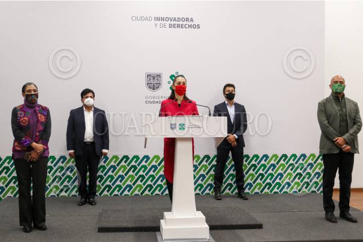 Claudia Sheinbaum, Cassiano de Stefano, Francisco Chiguil, encabezaron la conferencia de prensa en donde se presentó la alianza entre Grupo Modelo y el gobierno o de la ciudad.