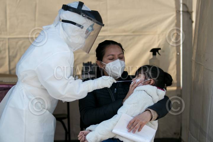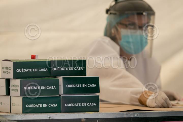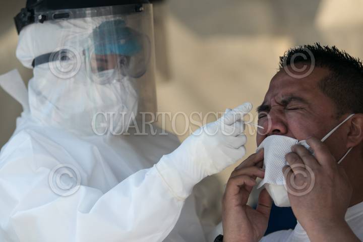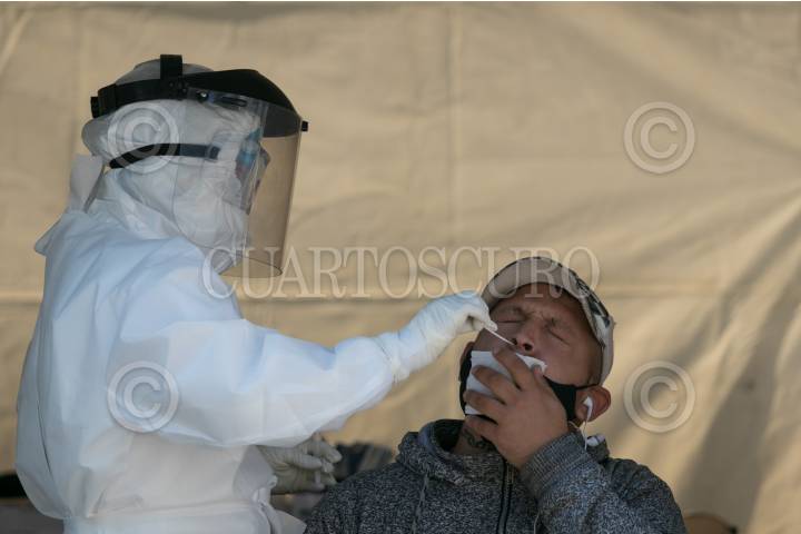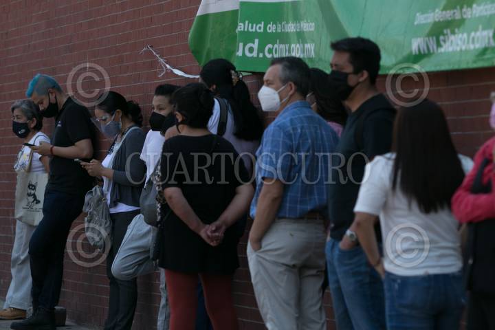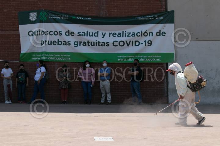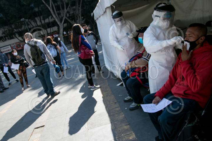 Personas acuden al macro kiosco, ubicado en la Plaza Pino Suárez, para realizarse la prueba de detección Covid-19