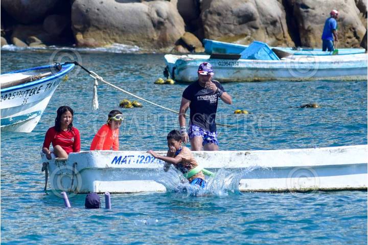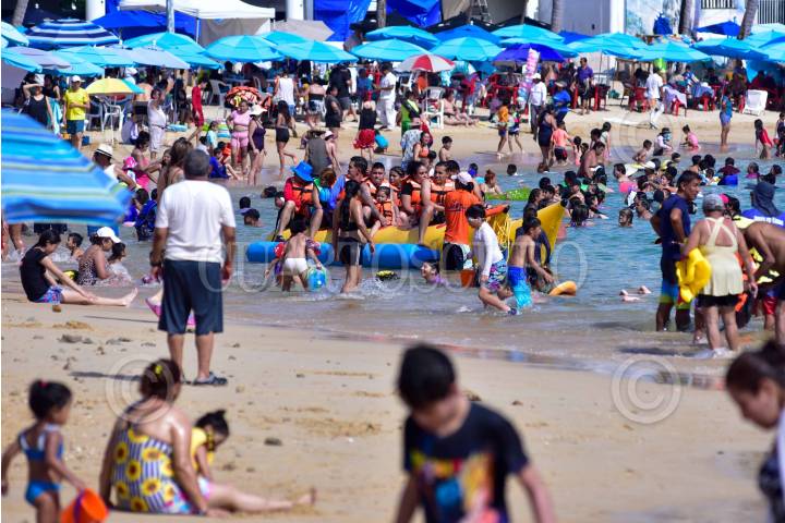 Acapulco, Gro, 4enero2025 Las playas de Caleta y Caletilla en la Zona Tradicional de Acapulco, tienen una gran afluencia de turistas en el último día de semana de las vacaciones decembrinas, la Secretaria de Turismo del Estado informó una ocupación hotelera para este último fin de semana de un 82.9 % para el puerto de Acapulco. Foto: Carlos Carbajal