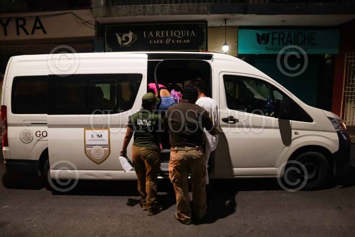 TAPACHULA, CHIAPAS, 01DICIEMBRE2023.- La noche de ayer, agentes del Instituto Nacional de Migración (INM) y unos 15 elementos de la Guardia Nacional (GN) sacaron a al menos 20 personas migrantes de hoteles del centro de esta ciudad, ubicados en la 4 avenida norte, donde se habían hospedado. Las autoridades indicaron que era parte de un operativo y que se llevaba un documento de cateo. FOTO: DAMIÁN SÁNCHEZ/CUARTOSCURO.COM