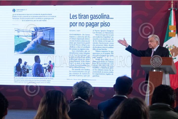 CIUDAD DE MÉXICO, 16OCTUBRE2023.- Andrés Manuel López Obrador, Presidente de México, habló sobre dos casos de inseguridad que se vivieron el fin de semana, el primero sucedió en Quintana Roo el donde supuestamente se capturó a un capo de la drogo, sin embargo preciso que fue una confusión; el oro fue en Tamaulipas en donde supuestamente piperos de gasolina fueron obligados a tirar su producto por no querer pagar "derecho de piso" al crimen organizado, esto durante la mañanera. FOTO: MOISÉS PABLO/CUARTOSCURO.COM