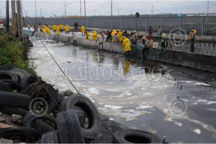 NEZAHUALCÓYOTL, EDOMEX , 01JULIO2024. - Trabajadores del municipio de Nezahualcóyotl realizan labores de limpieza luego de sofocar el incendio. FOTO: DANIEL AUGUSTO /CUARTOSCURO.COM