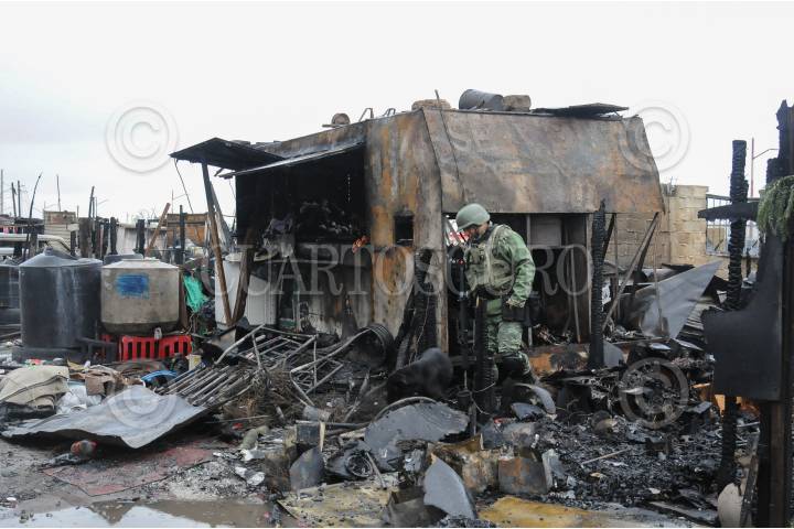 NEZAHUALCÓYOTL, EDOMEX, 01JULIO2024.- Elementos del ejército custodian la zona del incendio en las inmediaciones del AICM. FOTO: DANIEL AUGUSTO /CUARTOSCURO.COM