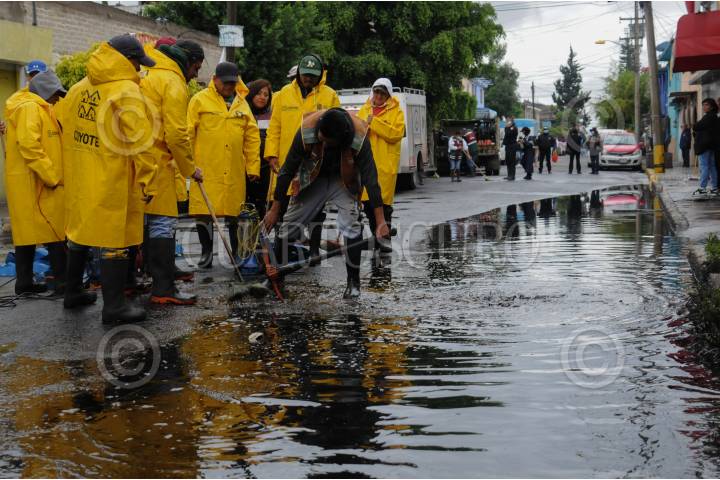 NEZAHUALCÓYOTL, EDOMEX, 01JULIO2024. - Un charco de combustible busca ser desahogado por la coladera por los trabajadores del municipio. FOTO: DANIEL AUGUSTO /CUARTOSCURO.COM