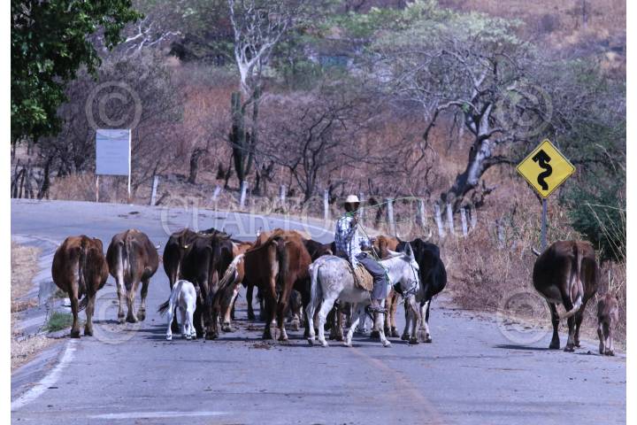 Un campesino lleva su pequeño hato de ganado a pastar en la comunidad de Xantiopan.