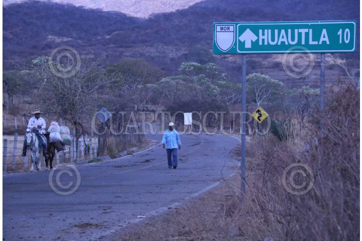 Campesinos regresan del campo en la comunidad serrana de Xantiopan, al sur de Morelos.