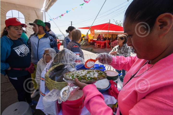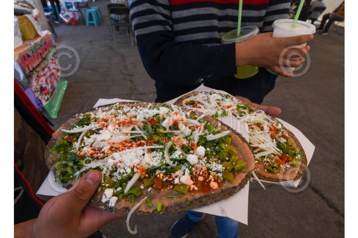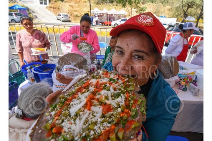 TOLUCA, ESTADO DE MÉXICO, 09MARZO2024.- Este fin de semana se lleva a cabo la Feria del Huarache en el barrio de la Teresona en la ciudad de Toluca, teniendo como sede Paseo Matlazincas mujeres que preparan estas tostadas de maíz azul martajado, frijoles, nopales, cilantro, queso rallado, cebolla y salsa de chile guajillo, uno de los alimentos más populares y que ha traspasado fronteras, y de los cuales es el delito de muchas personas. FOTO: CRISANTA ESPINOSA AGUILAR /CUARTOSCURO.COM