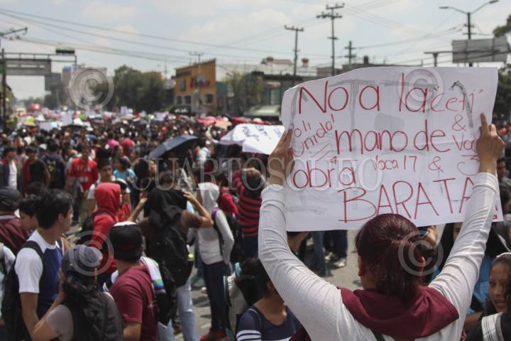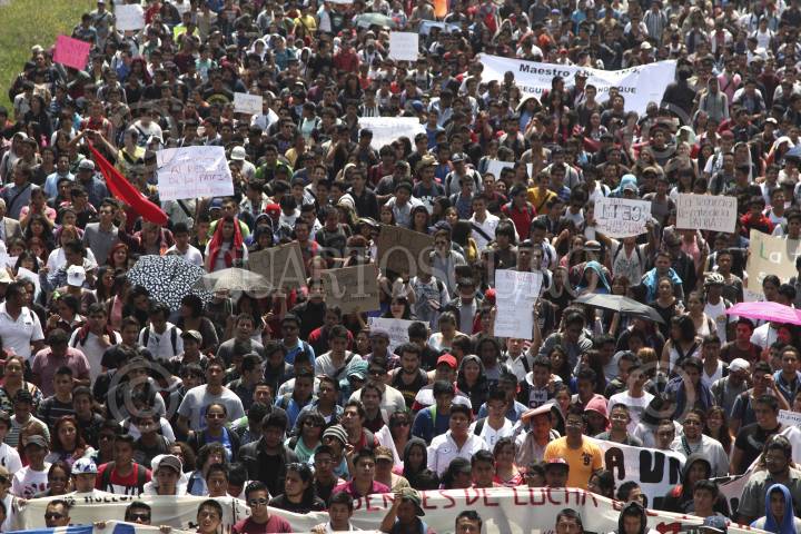 MÉXICO, D.F., 25SEPTIEMBRE2014.- Alumnos de diversos planteles de los Centros de Estudios Científicos y Tecnológicos (CECYT) y plantes de nivel superior realizaron una mega marcha en diversos contingentes que partieron de distintos puntos de la capital hacia las instalaciones del IPN ubicadas en Zacatenco, los estudiantes exigieron la revocación del nuevo plan de estudios del Instituto Politécnico Nacional. FOTO: SAÚL LÓPEZ /CUARTOSCURO.COM