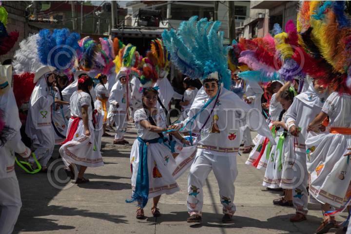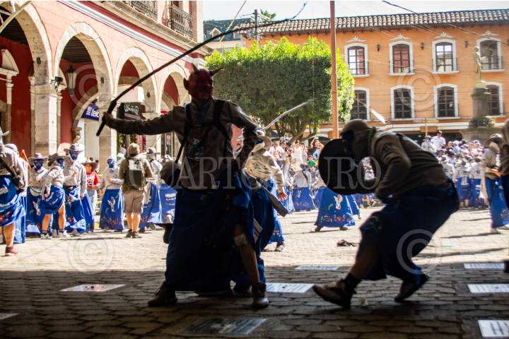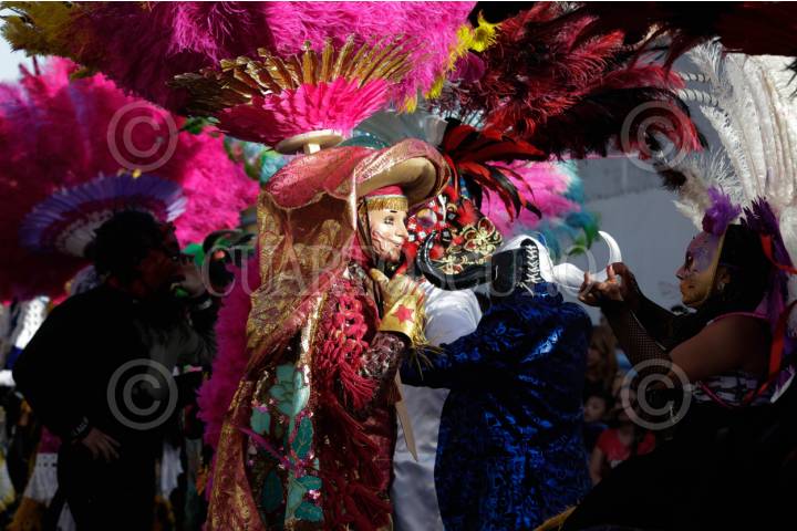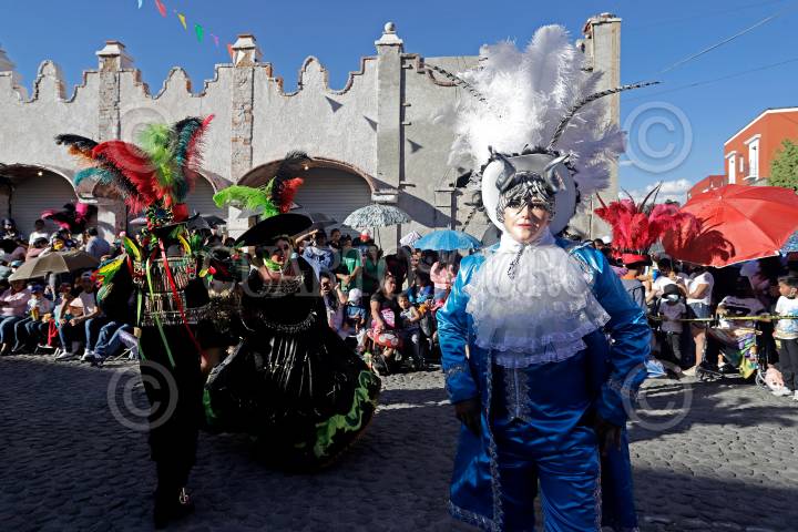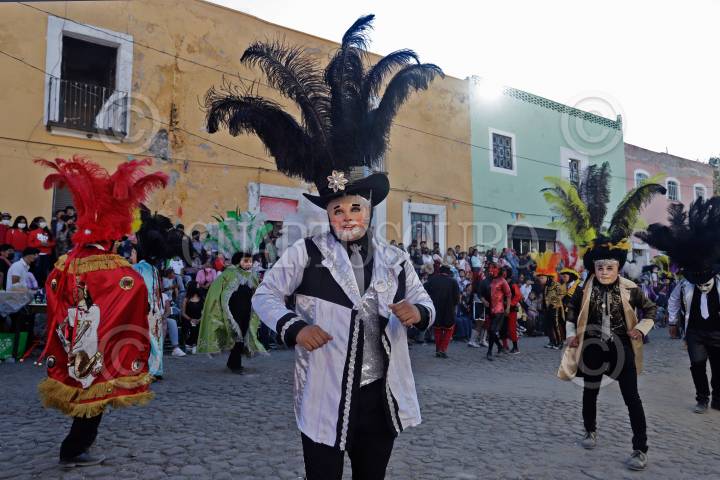 PUEBLA, PUEBLA, 11FEBRERO2024.- Cuadrillas de Huehues danzaron por los diferentes barrios de la capital poblana en el inicio del Carnaval 2024. FOTO: MIREYA NOVO/CUARTOSCURO.COM