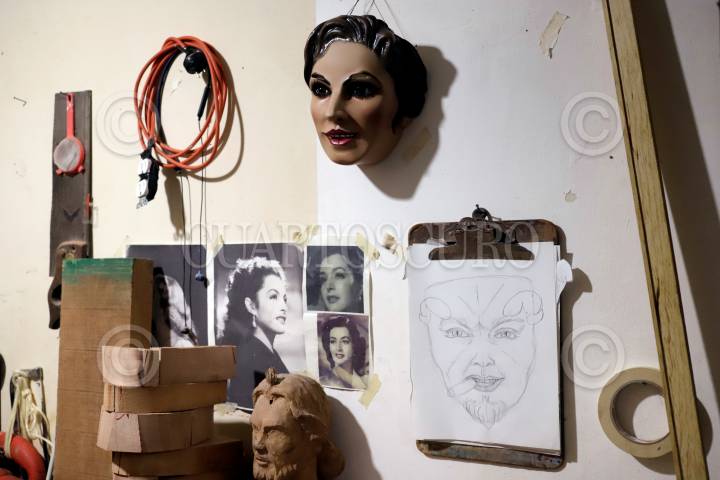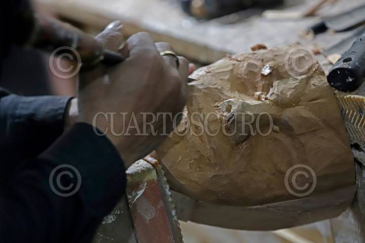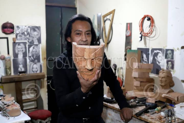 Adrián Becerra se dedica desde hace años a la elaboración de máscaras de madera para el tradicional Carnaval de Huehues en Puebla.