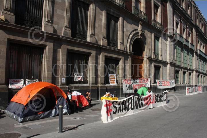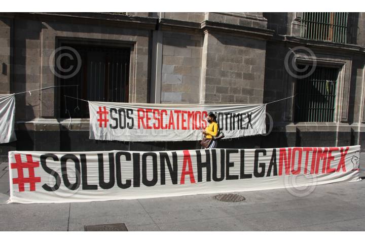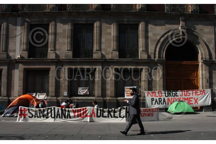 Miembros de SutNotimex, colocaron un plantón a las afueras de Palacio Nacional.