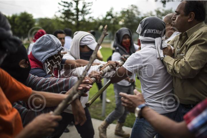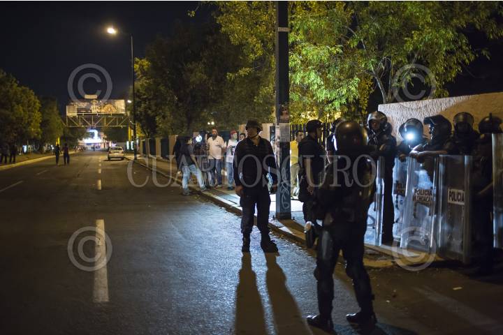 MORELIA, MICHOACÁN, 18OCTUBRE2016.- Funcionarios y alumnos de la Universidad Michoacana de San Nicólas de Hidalgo (UMSNH), intentaron liberar la toma que mantiene el Movimiento de Alumnos Rechazados en Ciudad Universitaria. Elementos del Grupo de Operaciones Especiales se hicieron presentes para evitar enfrentamientos entre estudiantes; hasta el momento CU permanece tomado y la Policía Michoacán mantiene el operativo en las inmediaciones de la casa de estudio. FOTO: ALAN ORTEGA /CUARTOSCURO.COM