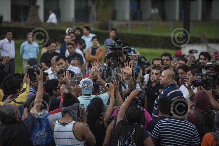MORELIA, MICHOACÁN, 21OCTUBRE2016.- Han transcurrido 54 días de huelga sostenidos por unos 300 jóvenes del Movimiento de Alumnos Rechazados (MAR), que mantienen cerradas las instalaciones de Ciudad Universitaria, la Facultad de Medicina, Odontología y Salud Pública de la Universidad Michoacana de San Nicólas de Hidalgo (UMSNH). Se dicen cansados de dormir en colchonetas y estar siempre alerta de cuidar sus intereses, ya han superado ya por más de 10 días cualquier huelga estudiantil y de sindicatos, de la que se tenga registro en la historia de esta institución. Mencionan que no buscan la confrontación con los compañeros de su casa de estudios y, que al contrario, pretenden llevar el movimiento lo más pacifico posible, en toda la huelga que sustentan, se han enfrentado a palos, pedradas y botellazos en más de 7 ocasiones con alumnos matriculados y elementos anti-motines de Seguridad Pública, argumentan que han recurrido a la violencia para sostener su lucha, que aseguran es legítima. Hasta hace unos días los paristas exigían poco más 780 lugares, ahora piden solo 150 espacios; el Honorable Consejo Universitario -como se le conoce- no ha dado solución a ninguna de las peticiones, pues argumentan que los lugares que exigen son imposibles de otorgar, pues se perdería la acreditación que la gran mayoría de las carreras de primer nivel que han logrado hasta hace poco. El Rector Medardo Serna, menciona que recurrir a las fuerzas de Seguridad Pública para el desalojo es la última opción, pues se seguirá privilegiando el diálogo. Esta casa de estudios superiores fue creada en Pátzcuaro por Don Vasco de Quiroga en 1540, llamándola el Real y Primitivo Colegio de San Nicólas Obispo y en 1917 el gobernador Pascual Ortíz Rubio la convierte en la Universidad Michoacana de San Nicólas de Hidalgo. En la imagen el Rector, Medardo Serna, antes de encabezar un encuentro con medios el día de hoy. FOTO: ALAN ORTEGA /CUARTOSCURO.COM