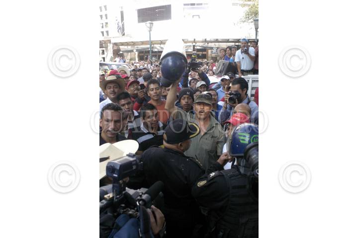 CHILPANCINGO, GUERRERO, 12JULIO2016.- Profesores de la Coordinadora Estatal de Trabajadores de la Educación en Guerrero (CETEG) encabezados por el profesor Carlos Botello Barrera, protestaron frente al Congreso del estado para pedir a los diputados que los apoyen en sus exigencia de derogar la reforma educativa, al final del mitin lanzaron huevos a los policías antimotines y a la fachada del edificio. FOTO: JOSÉ I. HERNÁNDEZ /CUARTOSCURO.COM