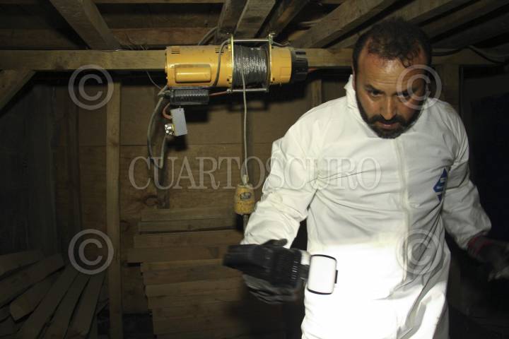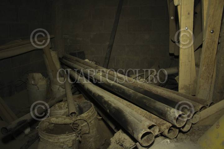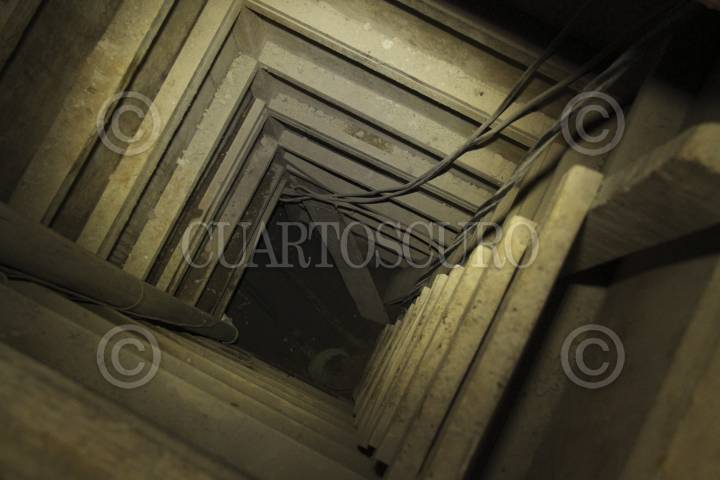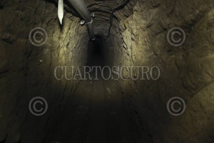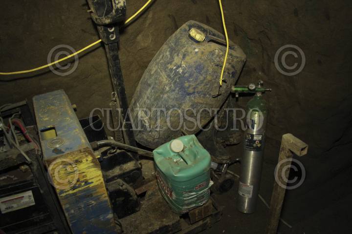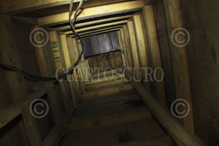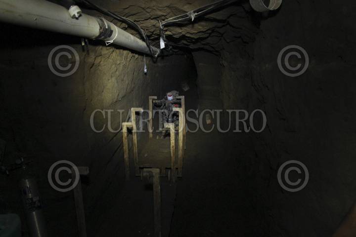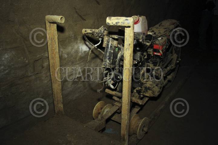 ALMOLOYA, EDOMEX, 15JULIO2015.- Autoridades federales abrieron a los medios por segundo día consecutivo el túnel por donde escapo el narcotraficante Joaquín Guzmán Loera "El Chapo", quien salió de su celda por un boquete realizado en su celda en el área de la regadera para luego descender más de diez metros y de ahí recorrer más de kilómetro y medio hasta salir en una casa en obra negra, ubicada en los alrededores del penal del Altiplano. La celebre oquedad ha sido calificada como toda una obra de ingeniería ya que contaba con iluminación, oxigeno, una moto, adaptada a un riel para presuntamente sacara la tierra de la excavación y sobre todo haber sido construido en un tiempo récord. Las autoridades continúan con las investigaciones y la PGR ha señalado al compadre y también narcotraficante Ismael "El Mayo" Zambada como el que coordinó el plan maestro para que su paisano sinalosense pudiera escapara por segunda vez de un penal de alta seguridad. FOTO: ISABEL MATEOS /CUARTOSCURO.COM