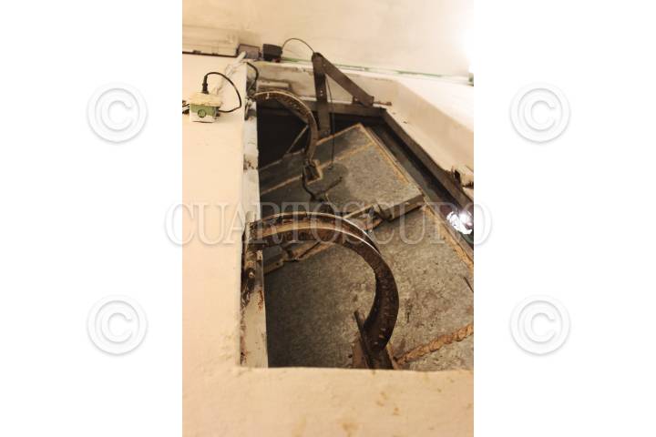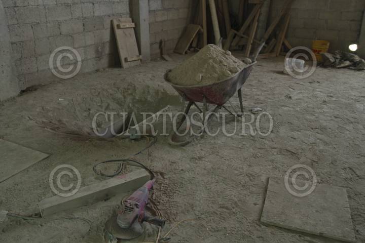 LOS MOCHIS, SINALOA, 11ENERO2016.- Al fondo del túnel por donde escapó Joaquín Guzmán Loera, alias El Chapo, se observa una compuerta por donde huyó en un primer momento el capo, esta estructura es parte de un sistema de escape que se encuentra en la recámara principal de la casa, ubicada en la calle Jiquilpan y Río Quelite de lo calonia Las Palmas. Este domicilio fue en donde la Marina implementó un operativo para detener al narcotraficante, en el cual murieron cuatro de sus sicarios, tras salir presuroso Guzmán Loera salió por una alcantarilla en donde robo un auto para proseguir con su huida, fue en este vehículo donde finalmente lo aprendieron. FOTO: MOISÉS PABLO /CUARTOSCURO.COM