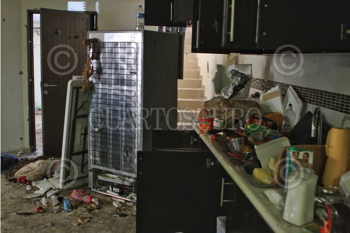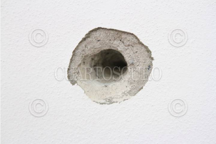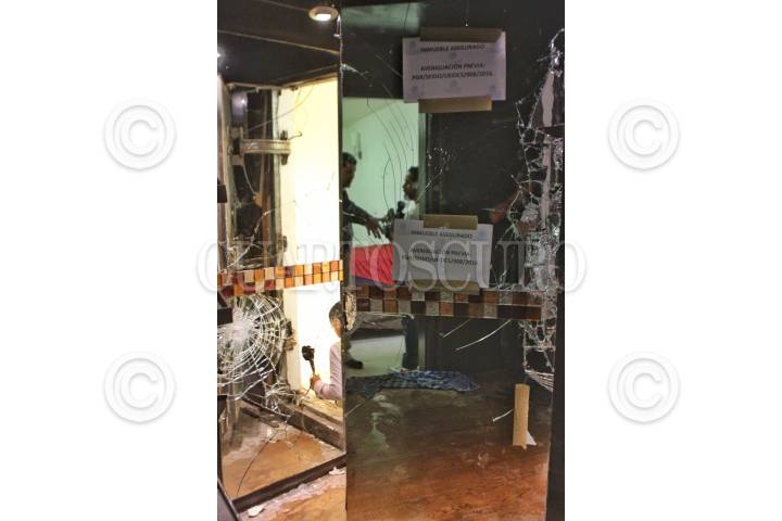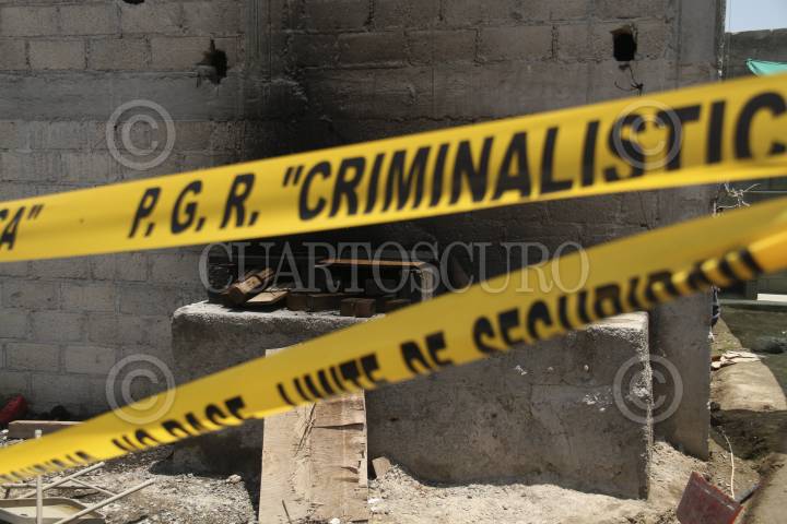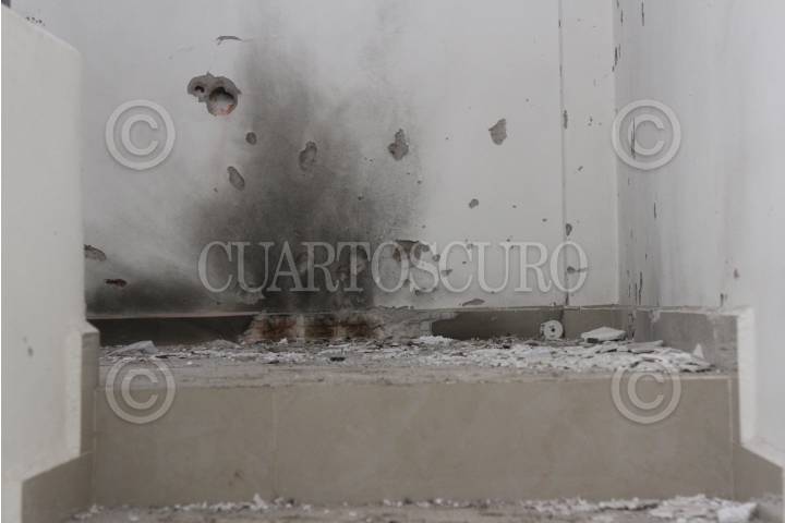 LOS MOCHIS, SINALOA, 11ENERO2016.- La casa ubicada en la calle de bulevar Jiquilpan casi esquina con Río Quelite sirvió como refugio de Joaquín Guzmán Loera, alias el Chapo, muestra los daños de la refriega que suscitó tras el operativo que implementó la Marina para capturarlo, en las paredes se observa los impactos de bala y se constata el alto calibre que se utilizó en la balacera. Cuatro gatilleros del capo fueron abatidos en este lugar. El narcotraficante huyó por un pasadizo que estaba construido exprofeso en su recamara y el cual lo conectaba con un tunel de unos diez metros y este a su vez con la red de alcantarillas de la ciudad. Tras huir en un primer momento a través de este sistema Guzmán Loera robo un auto, cuyo dueño lo reporto lo que llevó finalmente a su captura junto con su gatillero apodado el Cholo. FOTO: MOISÉS PABLO /CUARTOSCURO.COM
