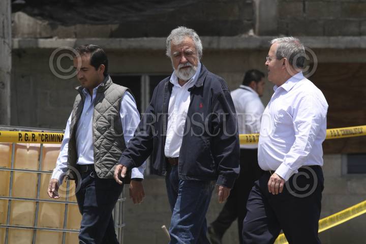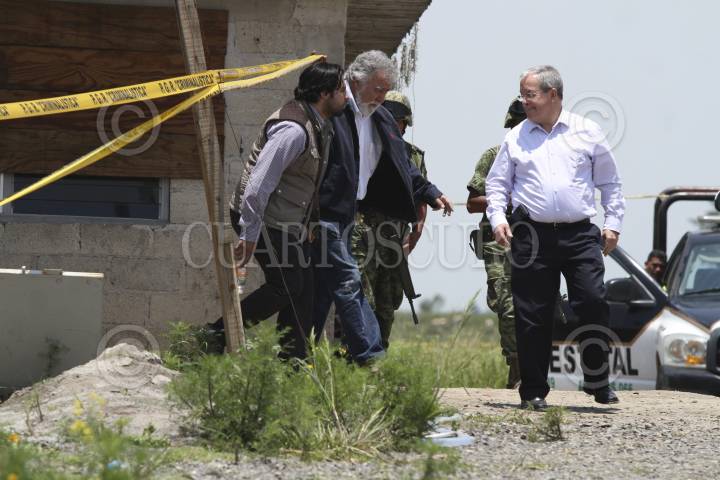 ALMOLOYA, EDOMEX, 15JULIO2015.- Permanece acordonado la casa en obra negra en cuyo interior se encuentra la salida del túnel por el cual el narcotraficante Joaquín Guzmán Loera "El Chapo" huyó de su celda en el penal de máxima de seguridad del Altiplano. El boquete mide kilómetro y medio de largo. Ayer por la noche Monte Alejandro Rubido, Comisionado de Seguridad Nacional mostró un vídeo donde el capo sinaloense se observa algo nervioso momentos antes de su huida, aunque aún no se ha precisado cuanto tiempo paso del último momento que apareció en las cámaras de seguridad hasta que se dieron cuenta de que ya no estaba. Por la tarde acudieron los senadores Alejandro Encinas y Fernando Yunez Márquez, quienes fueron recibidos por Alejandro Rubido. FOTO: ISABEL MATEOS /CUARTOSCURO.COM