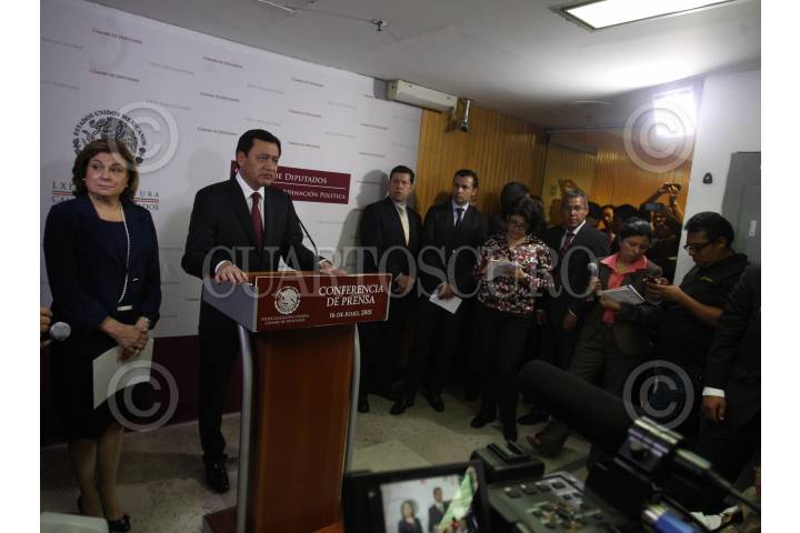 MÉXICO, D.F., 17JULIO2015.- El titular de la Secretaría de Gobernación Miguel Ángel Osorio Chong y la Procuradora General de la República Arely Gómez ofrecieron ayer por la noche una conferencia de prensa al finalizar su encuentro con los diputados que integran la Comisión Nacional de Seguridad Nacional en la Cámara de Diputados. Durante el encuentro con medios respondieron sobre los resultados de las investigaciones en torno a la fuga de Joaquín Guzmán Loera alias El Chapo, del penal del Altiplano. FOTO: GABINO ACEVEDO /CUARTOSCURO.COM