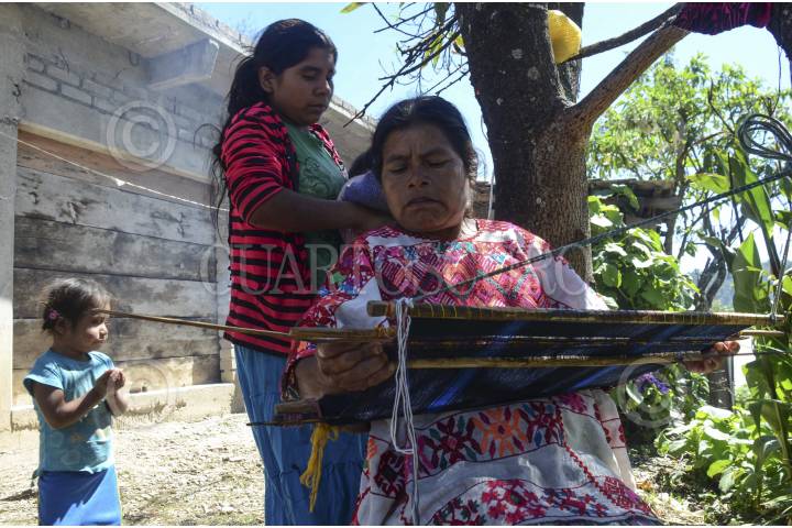 COCHAPA, GUERRERO, 06NOVIEMBRE2014.- Mary y Enedina, dos hermanas de la comunidad de Cochoapa fueron enseñadas desde pequeñas por sus familias a tejer y bordar servilletas y huipiles para las memelas. A su vez ellas están enseñando a sus hijas y nietos el oficio que ellas desempeñan. FOTO: BERNANDINO HERNÁNDEZ /CUARTOSCURO.COM