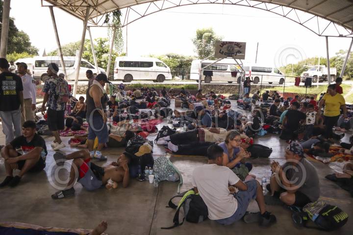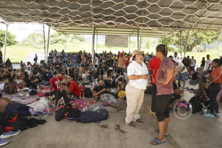 HUIXTLA, CHIAPAS, 15OCTUBRE2024.- La caravana migrante que partió el fin de semana se encuentra en el municipio de Huixtla. El instituto Nacional de Migración (INM) buscó dialogar con las personas para brindarle traslado a albergues, ayuda que rechazaron. Muchos de ellos descansaron en la cancha de fútbol de este municipio. FOTO: DAMIÁN SÁNCHEZ/CUARTOSCURO.COM