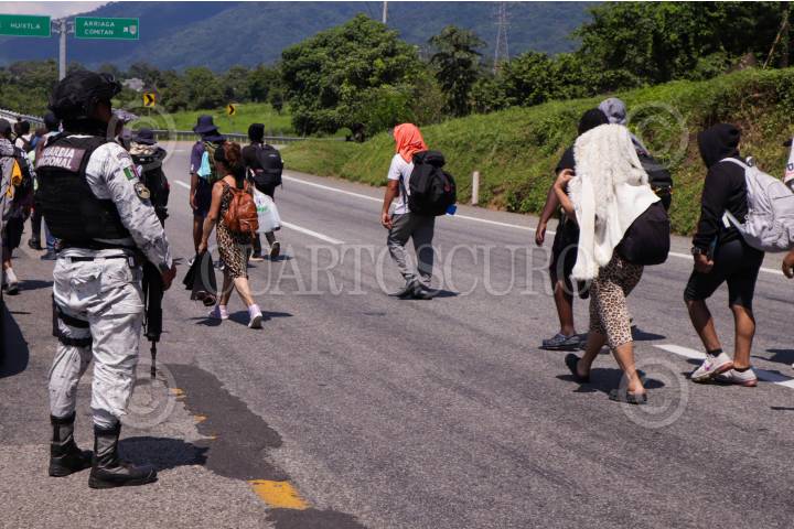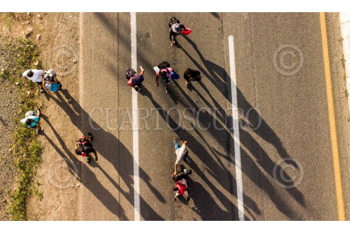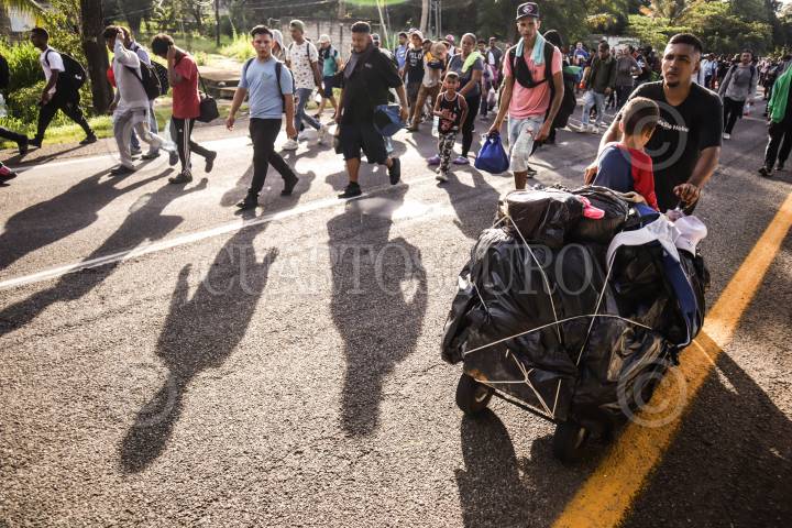 HUIXTLA, CHIAPAS, 03ENERO2025.- Las personas migrantes retoman su camino rumbo al municipios de Escuitla. Piden al Instituto Nacional de Migración (INM) autobuses para poder llegar a la ciudad de México. FOTO: DAMIÁN SÁNCHEZ/CUARTOSCURO.COM