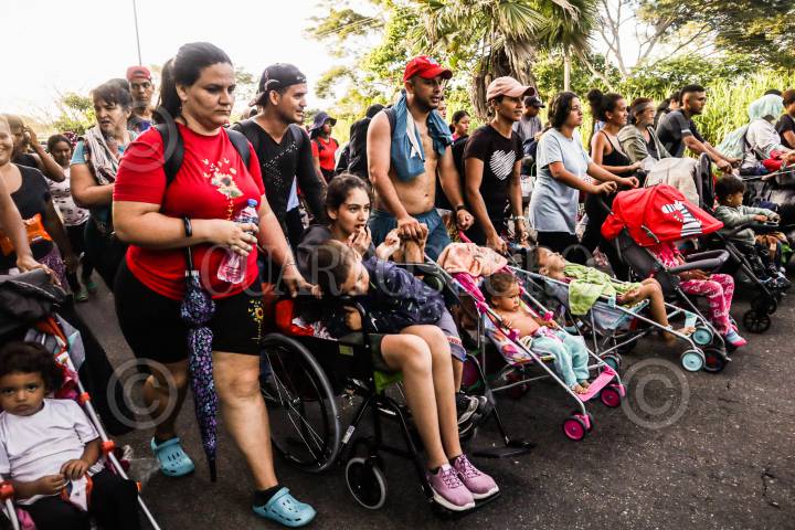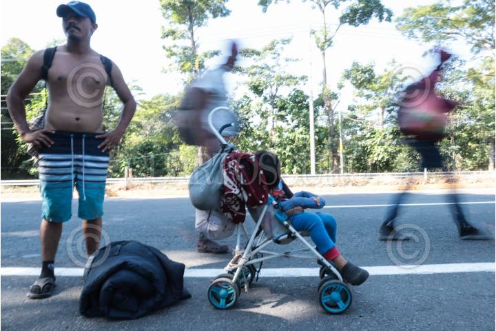 TAPACHULA, CHIAPAS. 23JULIO2024.- Un aproximado de Tres mil personas migrantes salen de Tapachula rumbo a la frontera norte. Entre la multitud de observan niñas y niños que son cargados por sus padres. han caminado 26.1 Kilometros, buscan llegar al Municipio de Huixtla y descansar para seguir avanzando. FOTO: DAMIÁN SÁNCHEZ/CUARTOSCURO.COM