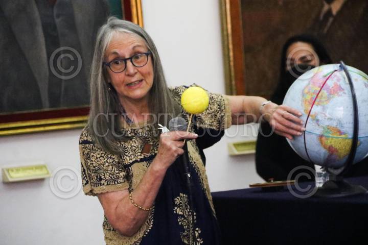 Presentación de Cosmos Ensayo de una descripción del mundo físico de Alexander von Humboldt, asiste Julieta Fierro y Jesús Reyes Heroles en el Palacio de Minería.
