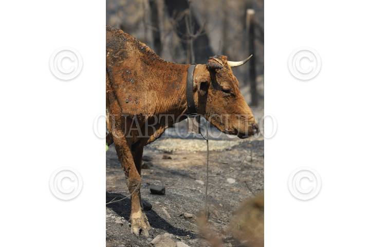 Ganado afectado por el incendio en Sierra de Santiago en la zona conocida como ejido La Ciénaga.