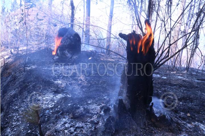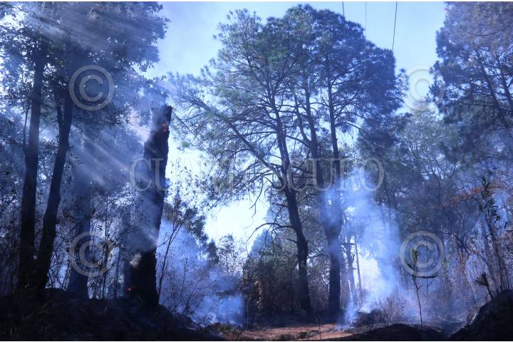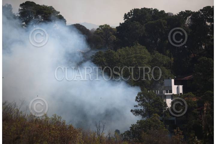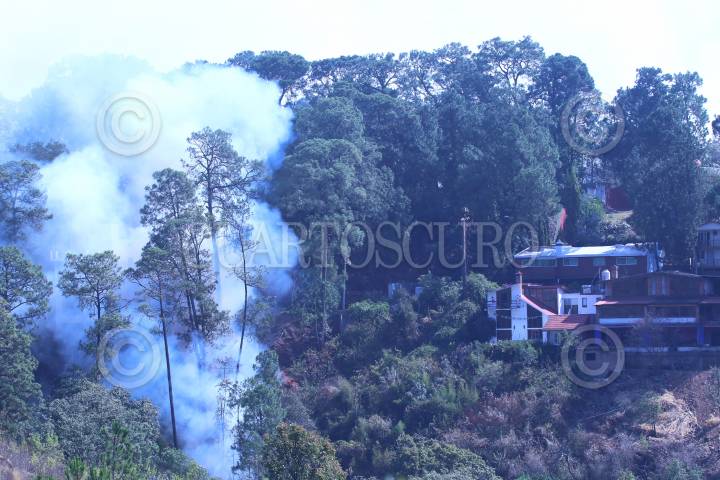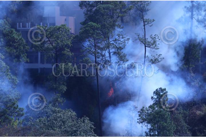 Un incendio forestal consume hectáreas de bosque y maleza en el noroeste de la capital de Morelos, hoy el fuego se encuentra ya afectando casas del fraccionamiento Del Bosque.
