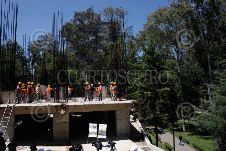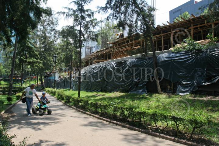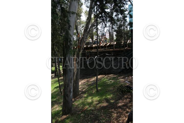 MÉXICO, D.F., 30JULIO2009.- Dentro del Parque Hundido se construye el complejo residencial "Park Living Millet", cuyos departamentos tendrán un costo de entre 300 mil y 600 mil dólares, con la autorización de la delegación Benito Juárez y a pesar de las denuncias y peticiones vecinales para detener la obra y para que la antigua casa y frontón que había en el lugar no fueran derruidos sino rehabilitados para la comunidad FOTO: ISAAC ESQUIVEL/CUARTOSCURO.COM