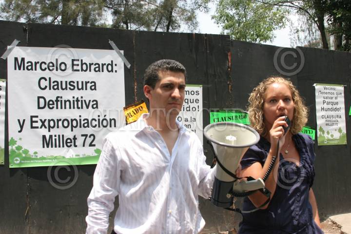 MÉXICO, D.F., 04AGOSTO2009.- La Asociación de Vecinos del Parque Hundido A.C., en compañia de la Diputada Rosaura Denegre Vaught, se reunieron en la calle Milet 72 ubicada en Insurgentes Sur, para realizar lo que llamaron "Clausura Permanente Ciudadana" a la construcción que se encuentra dentro del Parque Hundido, y piden sea regresado el predio al parque, por causas de utilidad pública. FOTO: ADRIANA ALVAREZ/CUARTOSCURO.COM