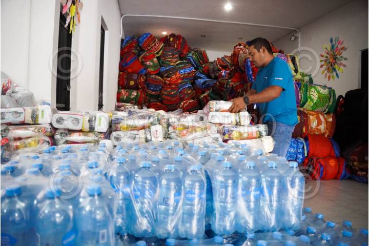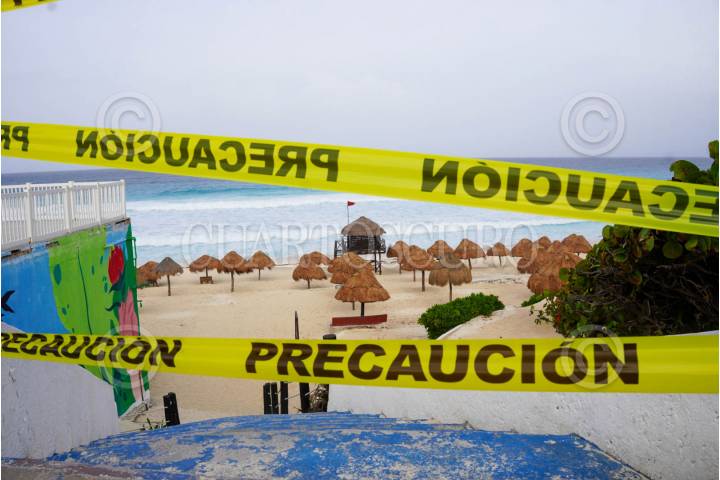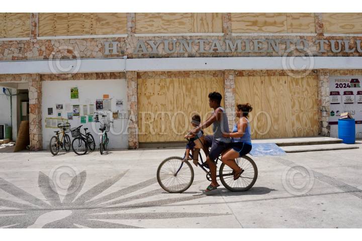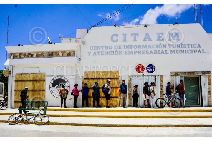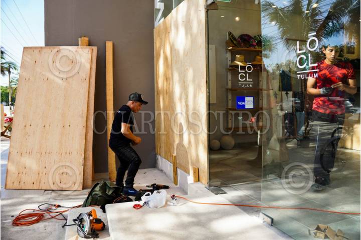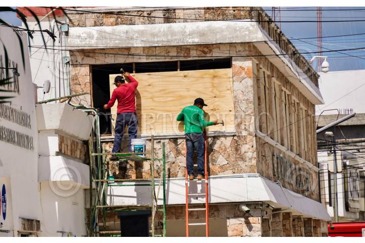 TULUM, QUINTANA ROO. 04JULIO2024.- El municipio de Tulum de Quintana Roo se prepara para el impacto del huracán Beryl, el Ayuntamiento está totalmente tapiado, al igual que algunos centros de trabajo y oficinas. Sin acceso hacia la zona sur del Parque Jaguar, los turistas que se hospedaban en los hoteles de esa área han sido evacuados y la zona arqueológica hasta el domingo o lunes no abrirá por medidas de prevención. La Secretaría de la Defensa Nacional estableció el Plan de Auxilio a la Población Civil en Casos de Desastre, denominado PLAN DNIII está activada. El Centro de Acopio de la Comuna listo para alguna contingencia. FOTO: ELIZABETH RUIZ/CUARTOSCURO.COM