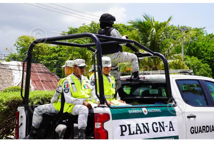 TULUM, QUINTANA ROO. 04JULIO2024.- Mara Lezama, gobernadora de Quintana Roo, recorrido por el asentamiento irregular 2 de Octubre de Tulum, en compañía de elementos del Ejército Mexicano y la Guardia Nacional, horas antes del impacto del huracán Beryl a quienes les exhortó ir a resguardo seguro en los refugios habilitados por las autoridades. FOTO: ELIZABETH RUIZ/CUARTOSCURO.COM
