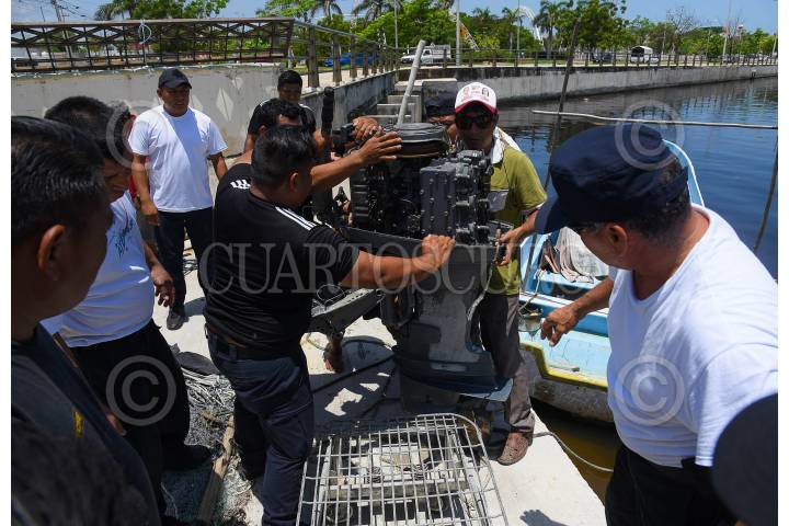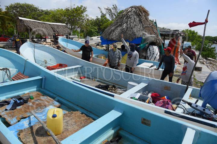 CAMPECHE, CAMPECHE, 04 JULIO2024.- Ante la cercanía del Huracán Beryl a costas campechanas, pescadores ribereños resguardaron sus lanchas y motores para que no sufran algún tipo de daño. FOTO: MICHAEL BALAM/CUARTOSCURO.COM