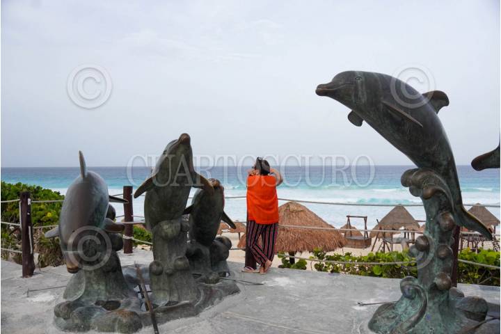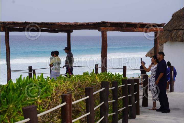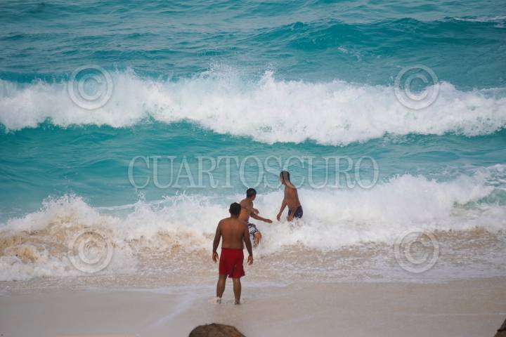 CANCÚN, QUINTANA ROO, 04JULIO2024.- A pesar de que las autoridades han pedido a paseantes ya no acercare a las playas, esto ante la inminente entrada del huracán Beryl, aun se observan a turistas divirtiéndose en las aguas turquesas de este destino turístico. El gobierno que encabeza Mara Lezama han pedido que a partir de las cinco de la tarde todas las personas busquen refugio. FOTO: ELIZABETH RUIZ/CUARTOSCURO.COM