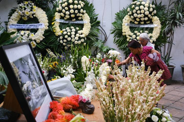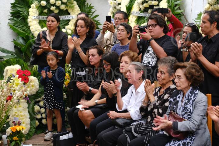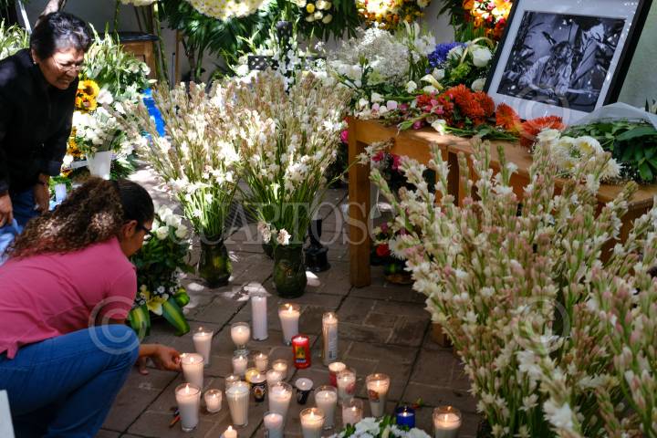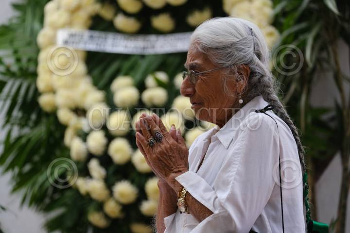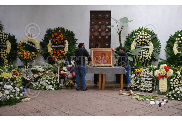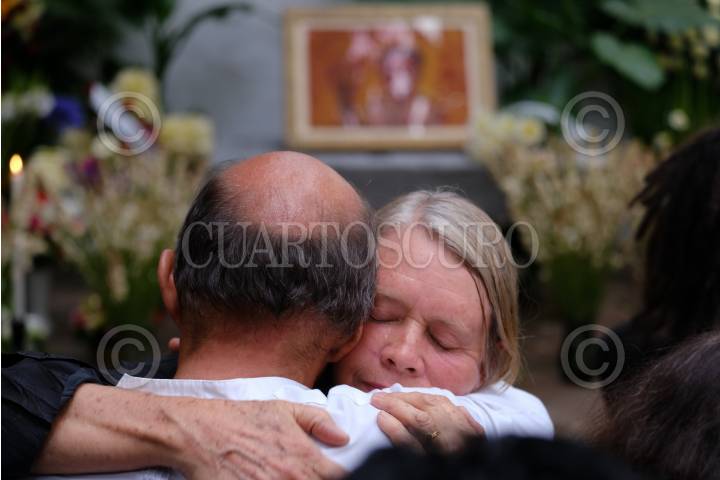OAXACA, OAXACA, O6SEPTIEMBRE2019.- Familiares del artista Francisco Toledo, quién murió ayer a la edad de 79 años, asistieron a la ofrenda que los estudiantes, vecinos y amigos realizaron en el patio central del Instituto de Artes Gráficas de Oaxaca (IAGO). FOTO: GRACIELA LÓPEZ /CUARTOSCURO.COM