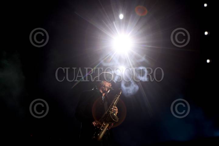 CIUDAD DE MÉXICO, 16MARZO2025. El músico Jay de la Cueva acompañó a Molotov durante su presentación en el primer día del Festival Iberoamericano de Cultura Musical Vive Latino, en su edición número 25, en el Estadio GNP Seguros de la capital del país. FOTO: EDGAR NEGRETE LIRA/CUARTOSCURO.COM