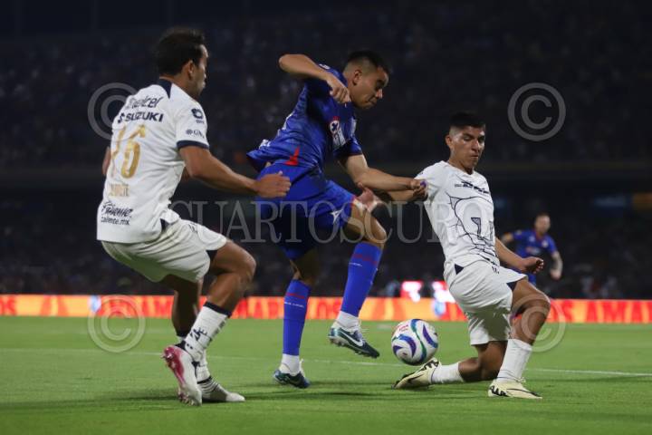 CIUDAD DE MÉXICO, 09MAYO2024. Uriel Antuna de la Máquina Celeste durante el partido de fútbol de ida, Pumas vs Cruz Azul correspondiente a la fase de cuartos de final del Torneo Clausura 2024 de Liga BBVA MX, en el Estadio Olímpico Universitario. FOTO: EDGAR NEGRETE LIRA/CUARTOSCURO.COM