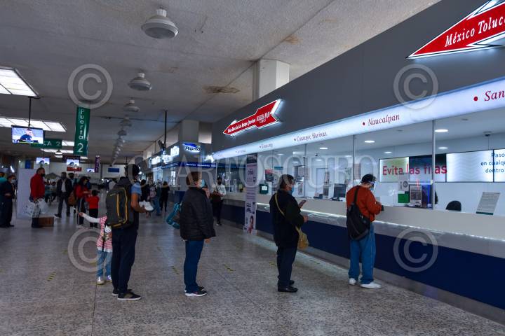 Usuarios de la Terminal de Autobuses de Toluca debe presentar una identificación oficial para poder realizar la compra de boletos y abordar el autobús, en caso de ser extranjero una identificación y permiso migratorio, esto ante el aumento de migrantes en la República Mexicana.