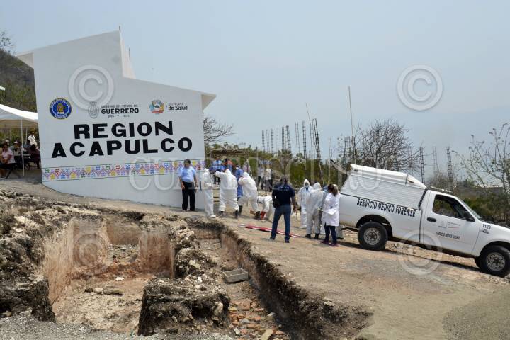 CHILPANCINGO, GUERRERO, 03MAYO2017.- Personal del Servicio Medico Forense inhumaron 32 cuerpos en el Cementerio Forense Estatal de Guerrero. Benyahuda Martínez Villa, director del Servicio Médico Forense, preciso que de los 60 cadáveres encontrados en el crematorio abandonado en Acapulco en el año 2015 propiedad de “Cremaciones Pacífico”, solo 28 se pudieron identificar y los 32 restantes se ponen en resguardo con sus pruebas genéticas, para una posible identificación en el futuro. Adelanto que mañana se pondrán en resguardo otros 24 cadáveres del “Caso Mexcaltepec” del municipio de Iguala; destacó que de diciembre a la fecha se han resguardado 114 cadáveres, y ante esta demanda de espacio se construirá otro módulo. FOTO: JOSÉ I. HERNÁNDEZ /CUARTOSCURO.COM
