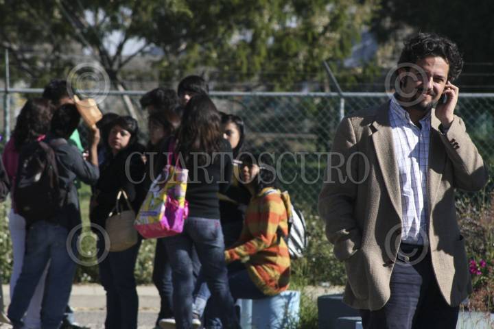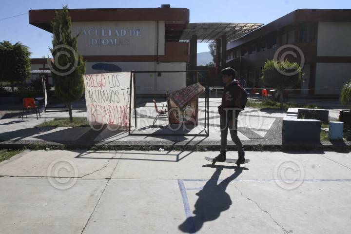 OAXACA, OAXACA, 25OCTUBRE2012.- Alumnos e integrantes del Consejo Técnico de la Facultad de Idiomas tomaron las instalaciones de esta escuela perteneciente a la Universidad Autónoma Benito Juárez de Oaxaca (UABJO) para exigir la cancelación del proceso de renovación del consejo así como la salida de Diego González Algara, director de la facultad y a su vez el reconocimiento de Rufino Vásquez Manuel. En la gráfica González Algara observa la toma de la escuela. FOTO: ARTURO PÉREZ ALFONSO /CUARTOSCURO.COM